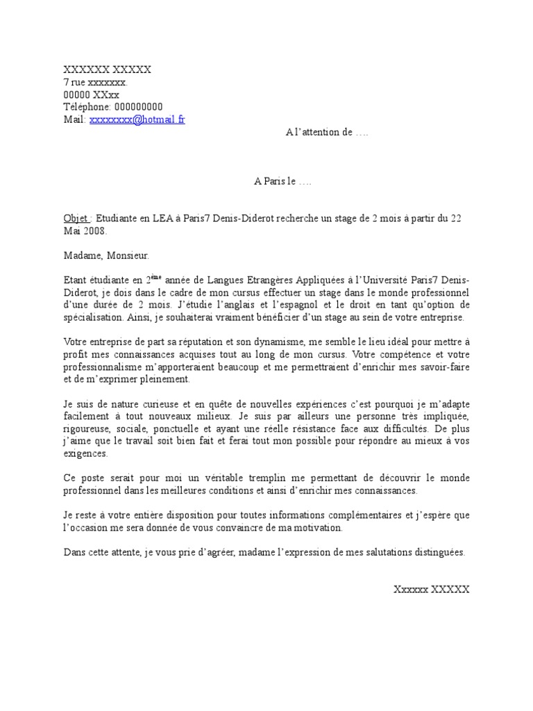 Exemples de lettre de motivation pour stage lettre gratuite - www.pinterest.com